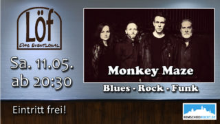 Am Samstag 11.05.19 um 20:30 gibt es im Löf wieder geilen Bluesrock mit Monkey Maze auf die Ohren. MonkeyMaze, das Blues-Rock Quartett aus Solingen und Köln kommend, generiert hochenergetischen Rock und Funk und natürlich, was im Blues nicht fehlen darf, herzergreifende Balladen. Cover? Ja! Aber durch das Affenlabyrinth gejagt! Die